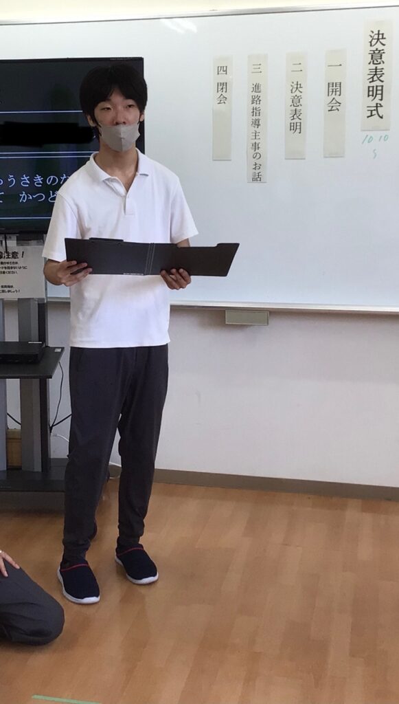 10月6日から始まる実習に向けて、「決意表明式」を行いました。