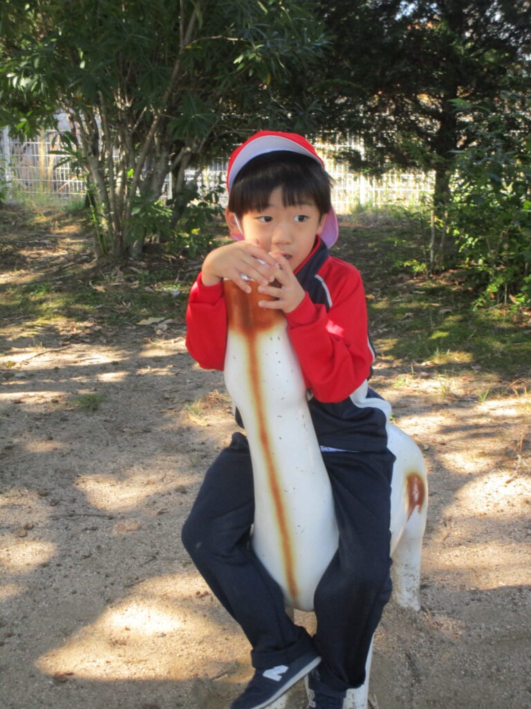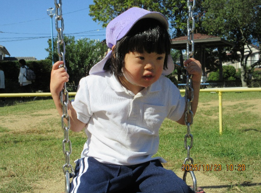 ミニアスレチックやブランコ、ロッキングチェア、砂場など、たくさんの遊具がある中で、自分の遊びたい遊具を選んでたくさん遊びました。