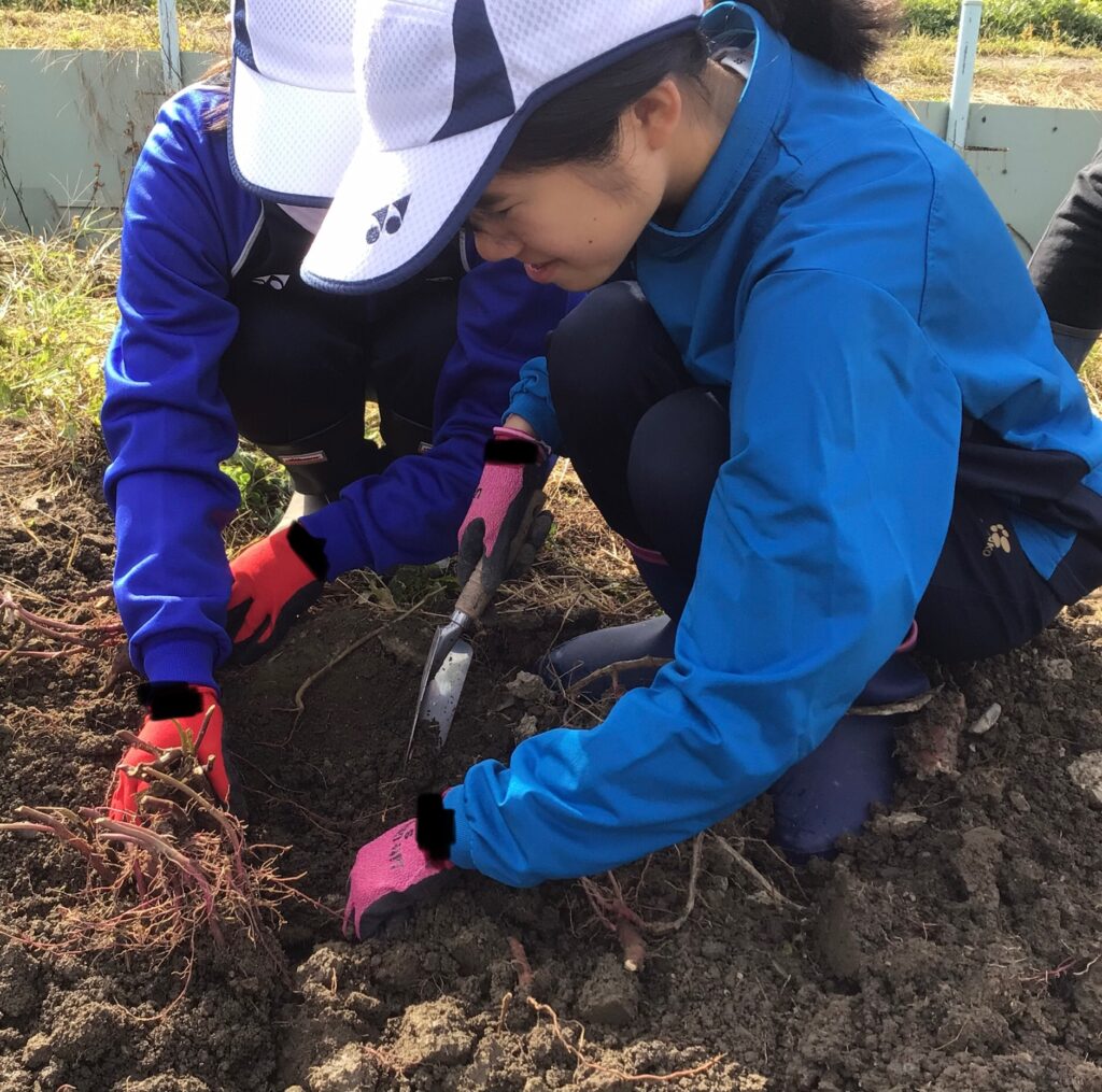 11月4日にさつまいも掘りをしました。5月に植えたさつまいもが土の中で立派に育っていました。傷をつけないように丁寧に掘り、抜いたさつまいもの大きさに驚いていました。たくさん収穫できたので、これから何に使うか相談して決めたいと思います。