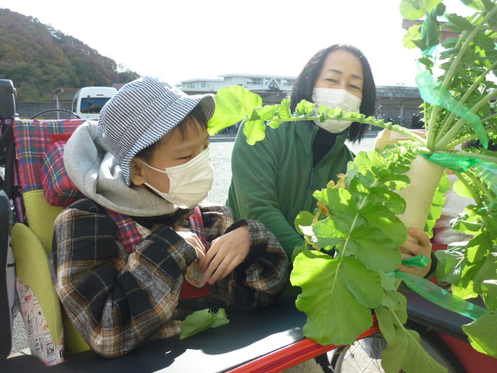 「よいしょ よいしょ」立派なダイコンがとれました。