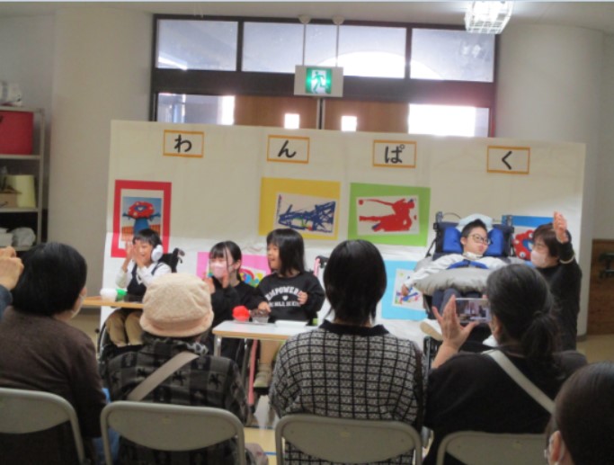 6年生は、4月から小学部最高学年としてがんばってきたことや行事のことをアルバムにして、クイズを交えながら発表しました。最後は楽しく、レッツ!ダンス♪