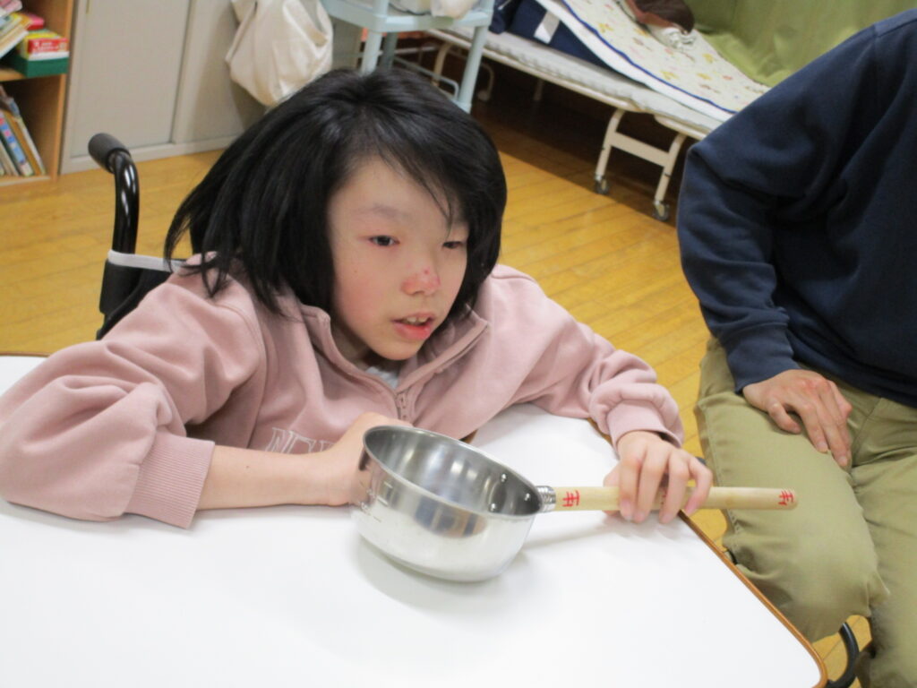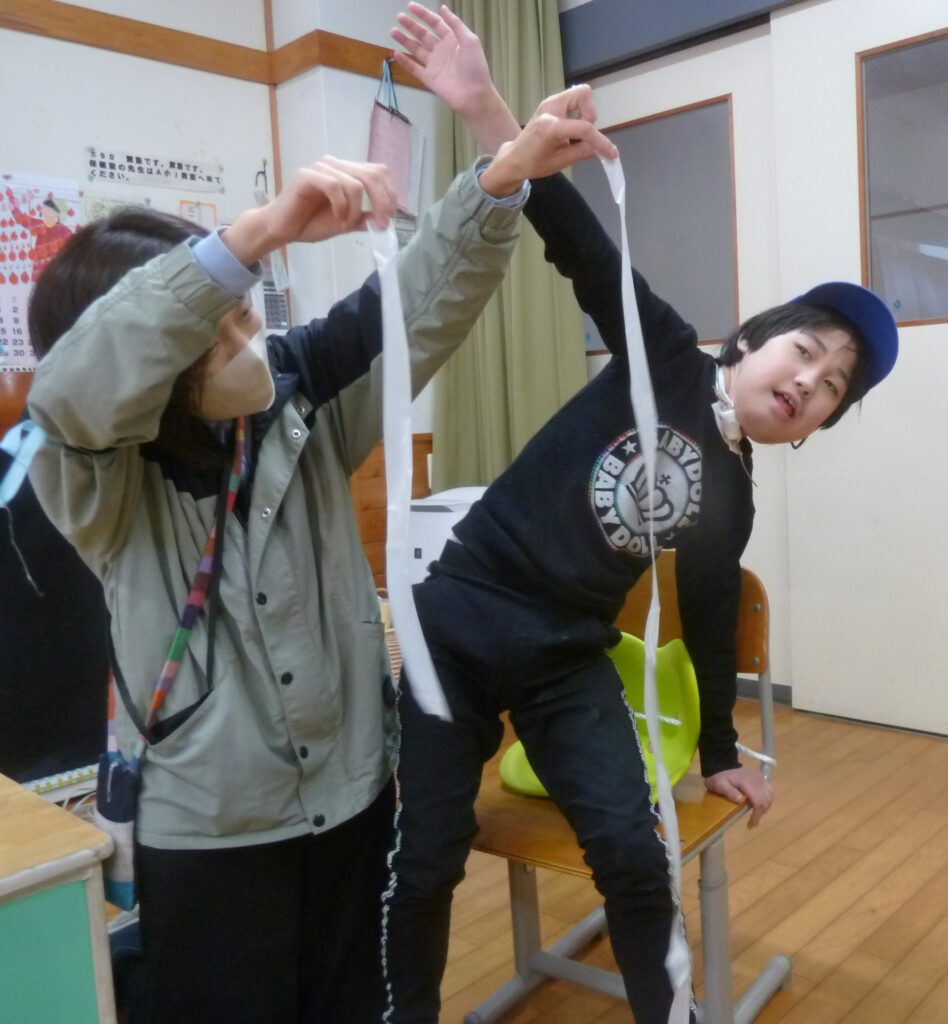 2学期の「みる・きく・はなす」の学習では、「めっきらもっきらどおんどん」の題材に取り組んでいます。登場人物になりきり課題に取り組んだり、友達とやり取りしたりしながら楽しく活動することができました。