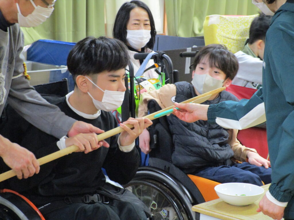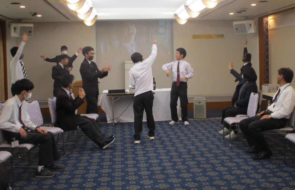 食事をしたあとは、生徒が企画したお楽しみ会を開催しました。みんなでゲームしたり歌やダンスをしたりして楽しみました。