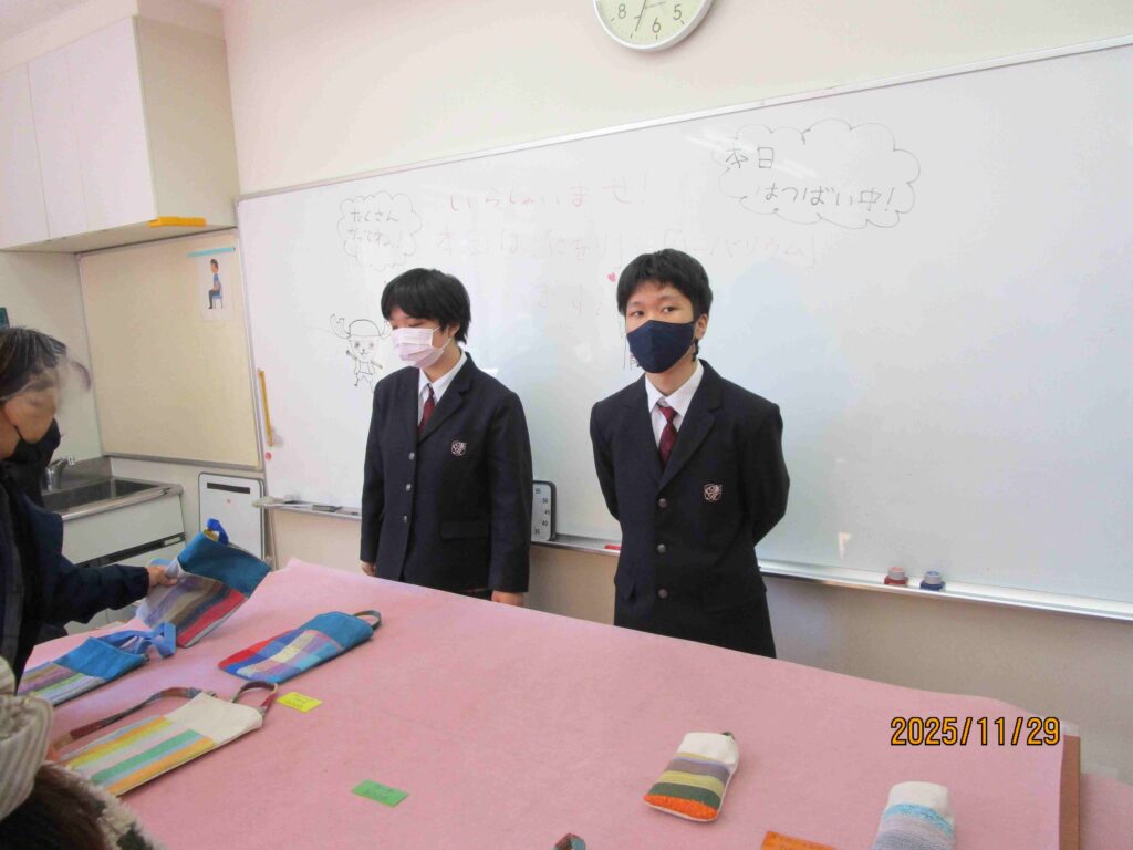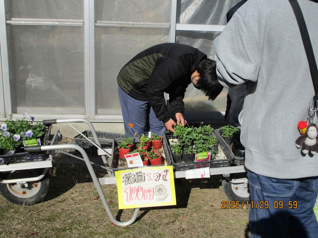 11月29日(土)に、「ひがしゆめまつり」を開催しました。B高では、製菓班・手工芸班・農業班・軽作業班・木工班が作業学習で製作した製品や農業班が畑で収穫した野菜の販売をしたり、クリーン班が校内の環境整備や販売の案内をしたりしました。今年も、たくさんの保護者や地域の方々に生徒たちが作った作業製品を購入していただくことができました。販売は大盛況でとても忙しかったですが、生徒たちは自分たちが作った製品を購入していただける喜びを感じながら、最後まで集中して活動に取り組むことができました。ありがとうございました。