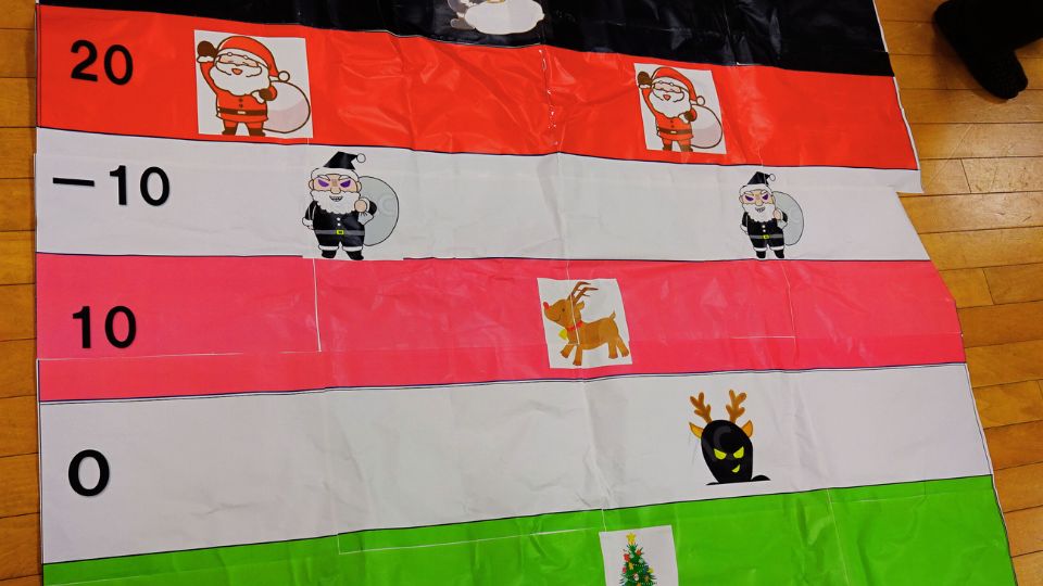 ボッチャのようなやり方で点を取りあうゲームをしました。