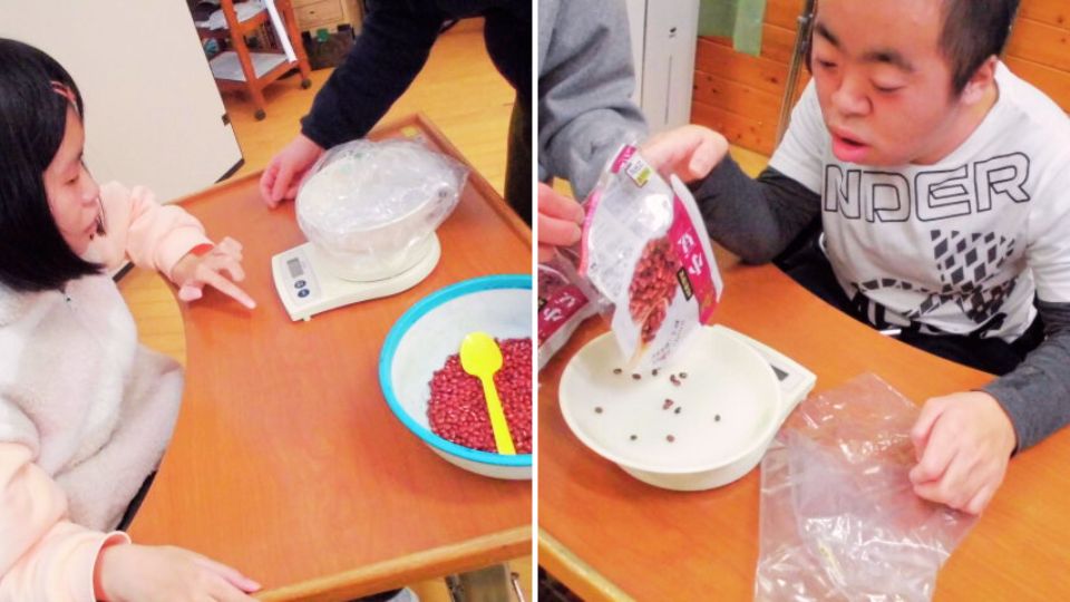 あずきの触感を味わったり、袋を揺らして音を聞いたりしました。