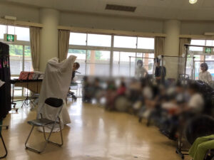 6月13日(火)、高島第一保育園の先生方による、「お話の時間」がありました。毎年、小学部の子どもたちが喜ぶ絵本や音楽、仕掛けなどを用意していただき、子どもたちも教員も楽しみにしている時間です。今回は、夏にぴったりのおばけやかたつむりなどが出てきました。
