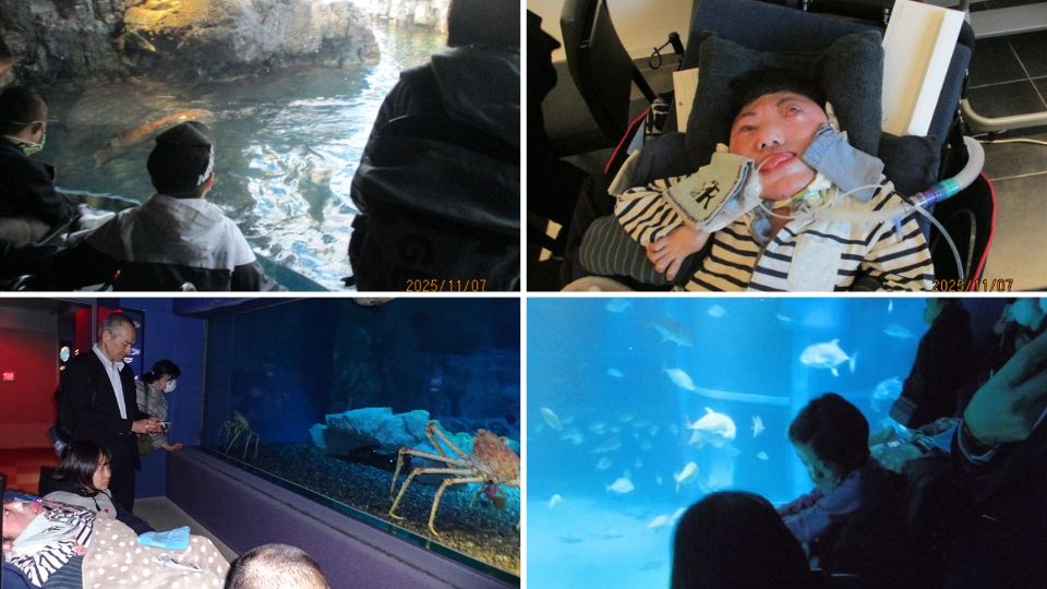 2日目の海遊館では、ゆったりと泳ぐジンベエザメや、活発に泳ぐイルカ、色鮮やかな熱帯魚など、さまざまな海の生き物たちに、しっかり注目することができていました。目の前を通り過ぎる魚影をじっと目で追いかけ、水槽の世界に引き込まれている様子でした。