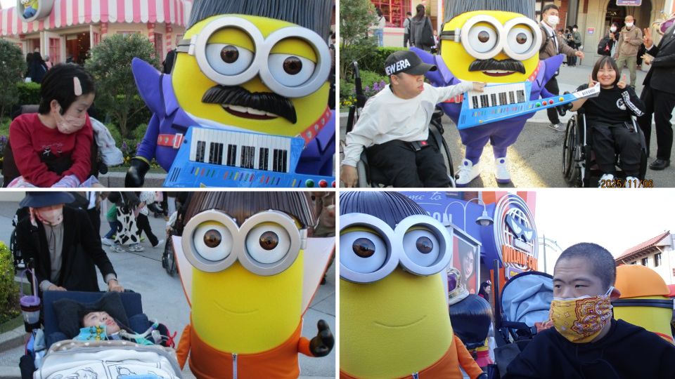1日目のUSJでは、パークの活気あふれる雰囲気に、みんなの表情も一段と輝いていました。特に、ダイナミックなショーでは、音楽やパフォーマンスにみんな大興奮! 手をたたいたり、体を揺らしたりしながら、その世界観に夢中になっていました。また、様々なキャラクターと関わったり、写真を撮ったりしてうれしそうにしていました。