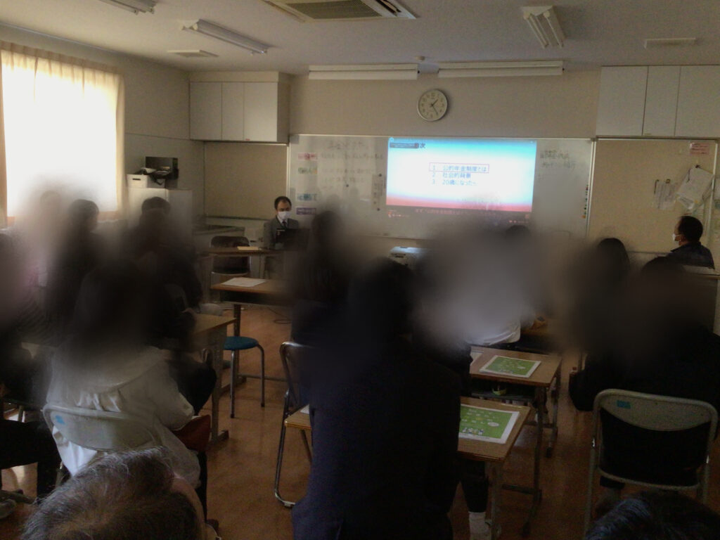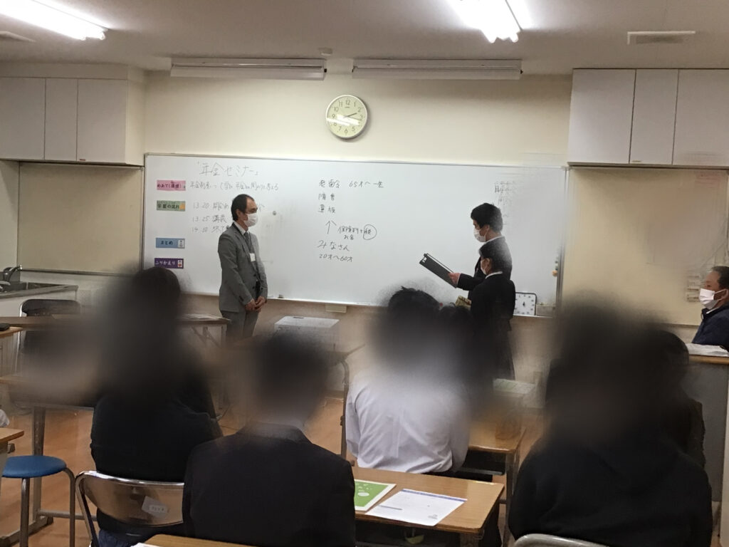 B高/知的障害部門 B高3年 年金セミナー 2025 年 11 月 14 日 by higasisien100 外部講師の方においでいただき、3年生が年金の話を聞きました。 保護者や施設の方もたくさん参加してくださり、将来の生活に必要な話を聞くことができました。 生徒にとって少し難しい内容だったかもしれませんが、みんな真剣に話を聞いていました。