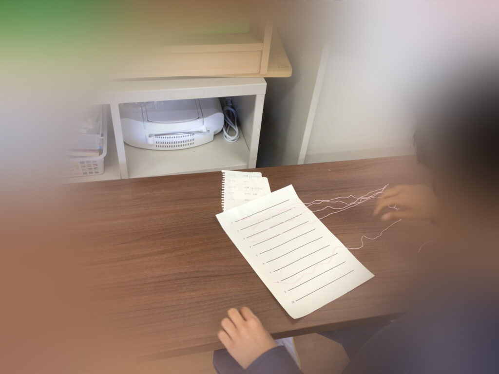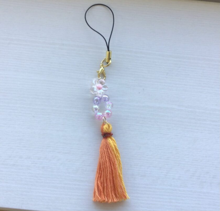手工芸班の製品作りの過程で出た端糸もらい、その糸を使ってストラップ作りをしています。
