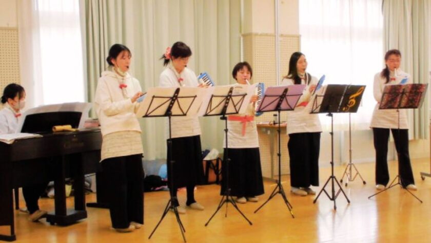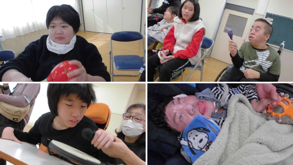 鑑賞する場面で、生徒たちは音楽に合わせて手を叩いたり、演奏を真剣に聴いたりしていました。