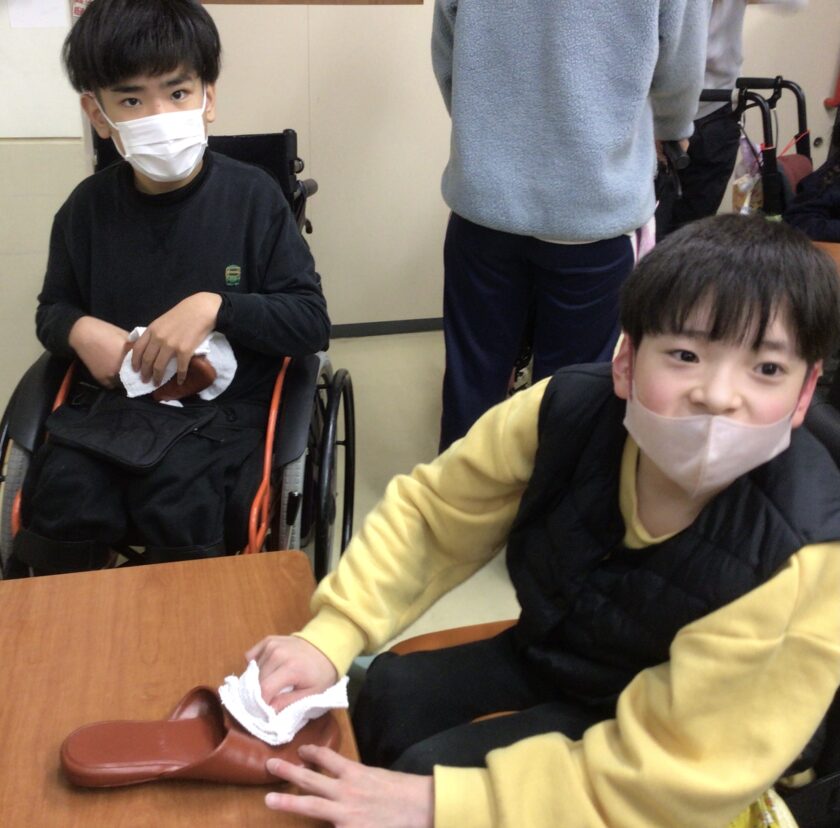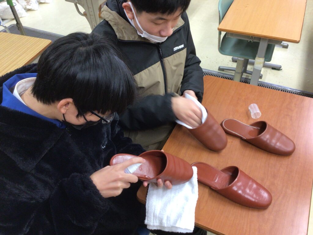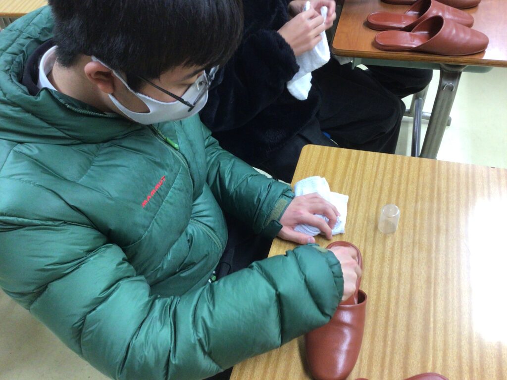 2月25日(金)、地域の高齢者の方が気持ちよく生活できるように校内ボランティア活動を実施しました。学校の近くの高齢者施設「千寿」から高齢者の方々が使用しているスリッパを消毒する活動を行いました。すべての部門から多くの児童生徒が参加し、スリッパを拭く活動を通じて、地域の高齢者の方々の役に立てたことに達成感を感じていました。