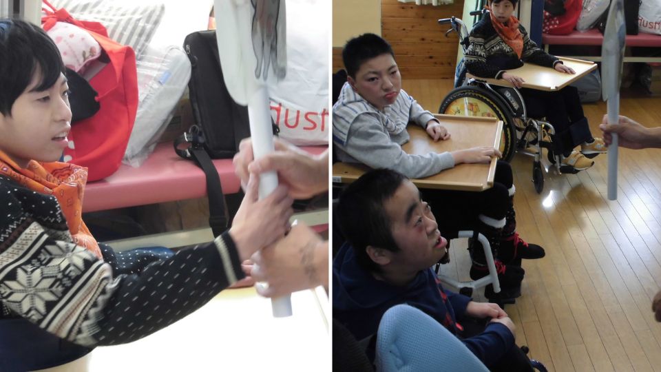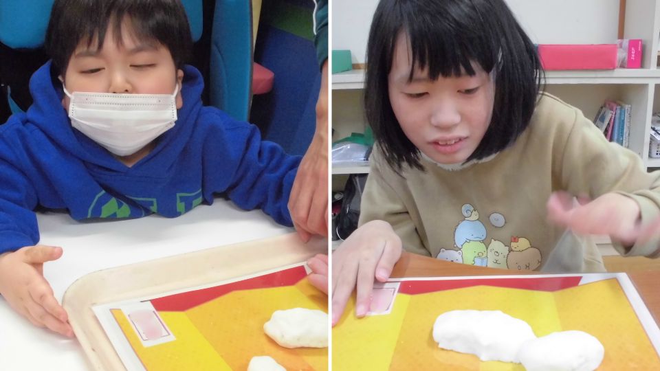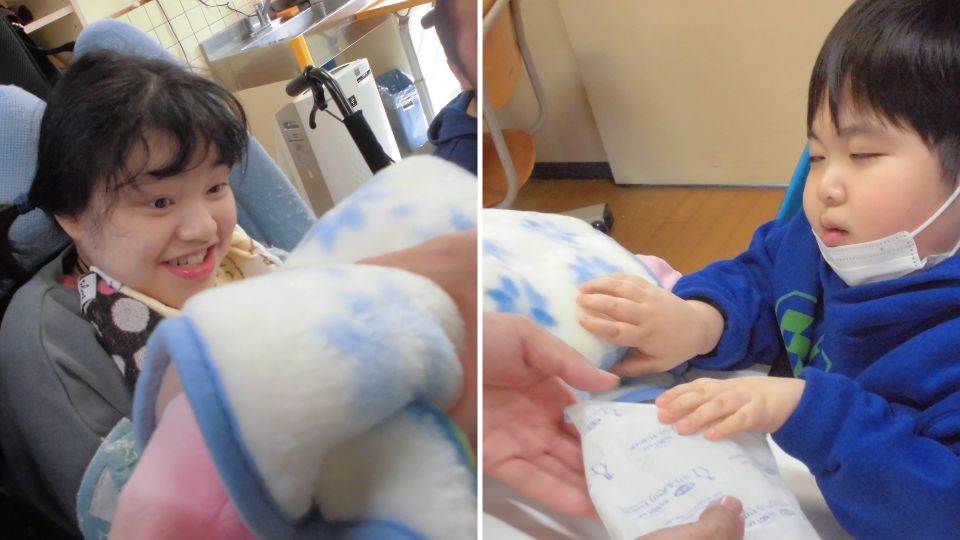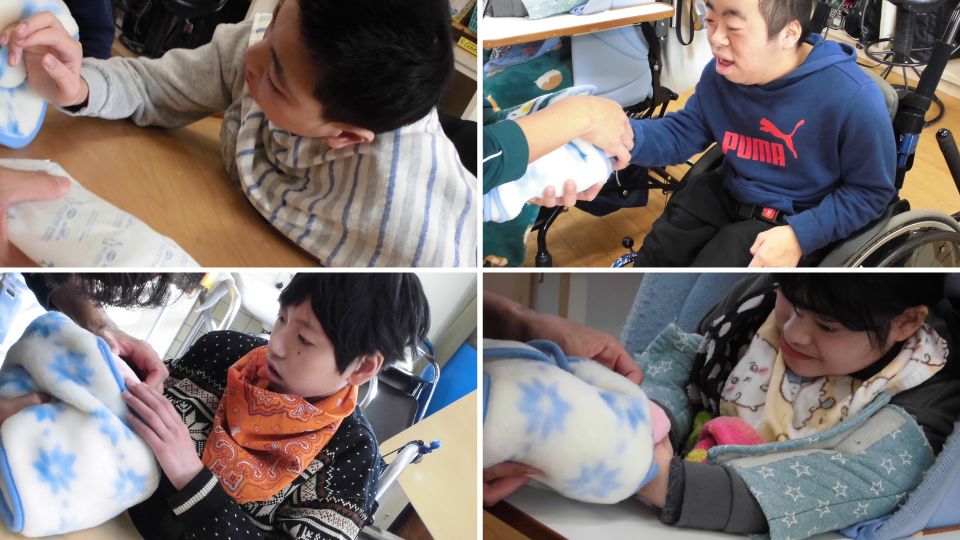 また、防寒着や保冷剤に触れて温度を感じたり、「あたたかい」「さむい」ものを選んだりしました。