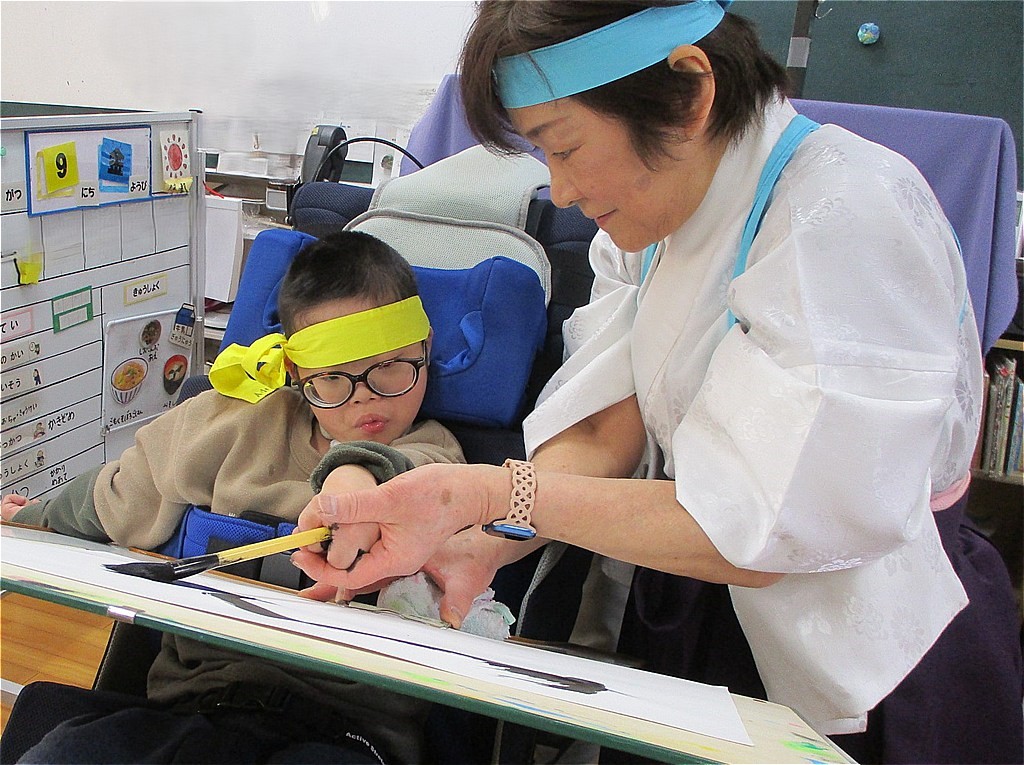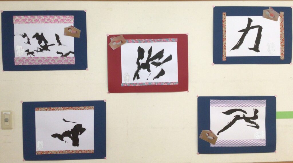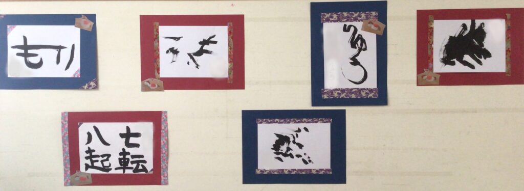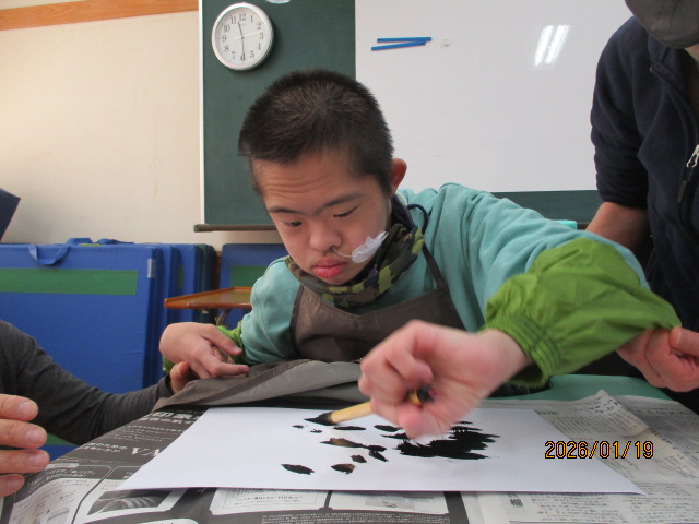 当日、欠席した生徒もいましたが、みんなで書初めをしました。