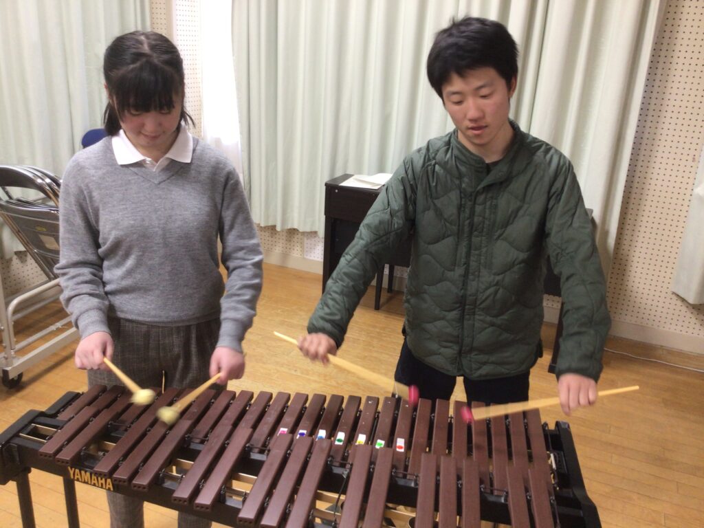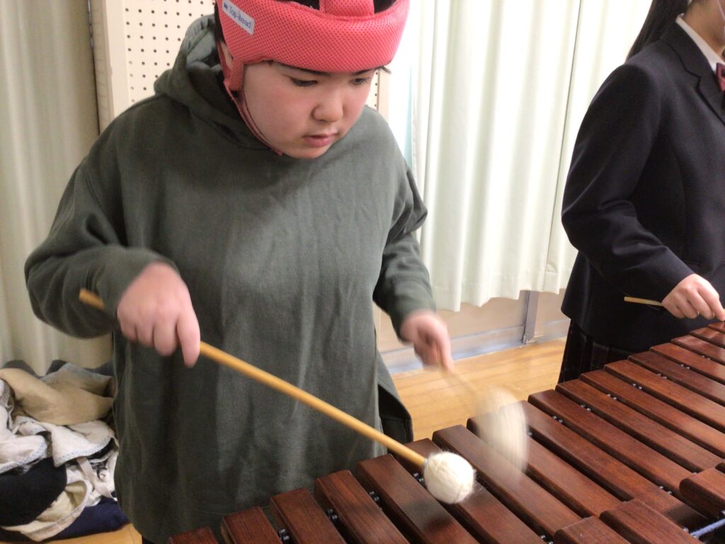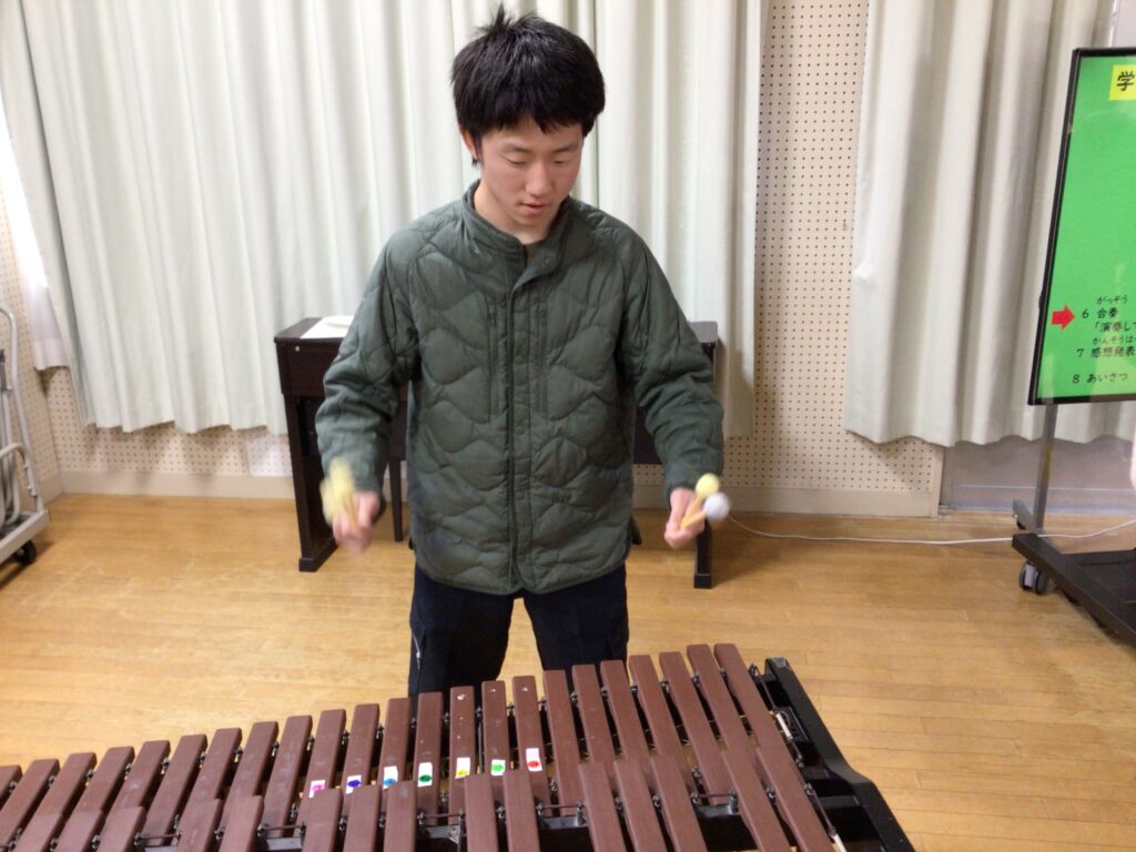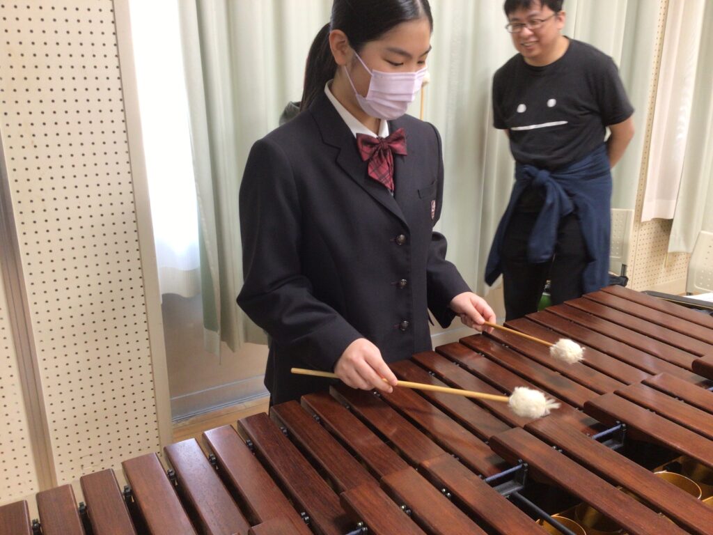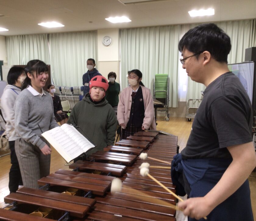 1月22日(木)と29日(木)、マリンバ奏者の松岡雅史先生を講師にお招きしました。マリンバの演奏を鑑賞したり、実際に叩いてみたりする体験活動を通して、マリンバの魅力に触れることができました。生徒のリクエストに応えていただいたり、ピアノとのアンサンブルを堪能したりと、まさに目と耳と心で感じるひとときとなりました。締めくくりには、マリンバの柔らかな響きとともに校歌を合唱し、心温まる交流となりました。