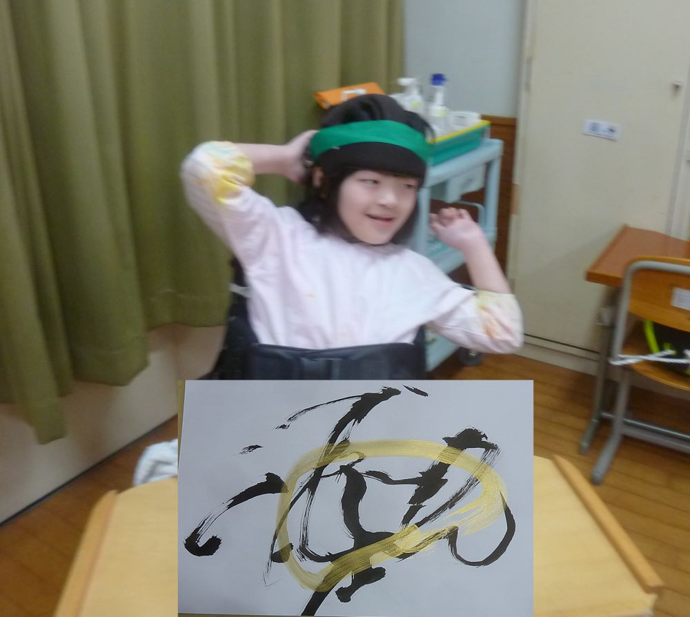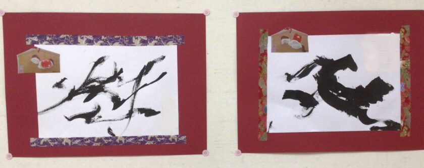 新年を迎え、気持ちも新たに書き初めをしました。前回の投稿で紹介できなかった様子と作品です。