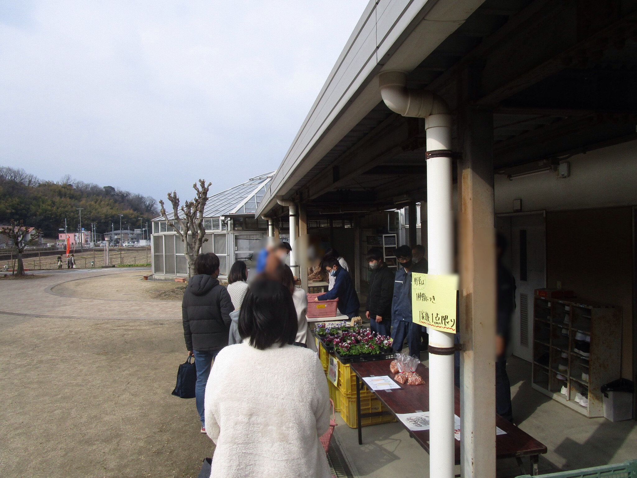 2月12日(木)、高等部の生徒による「第2回 ひがしマーケット」が開催され、保護者や地域の皆さんにご来場いただきました。生徒たちが作業学習で作り上げたクッキー、季節の野菜、木工やさをり織り製品などを販売し、たくさんの方々にお買い上げいただきました。