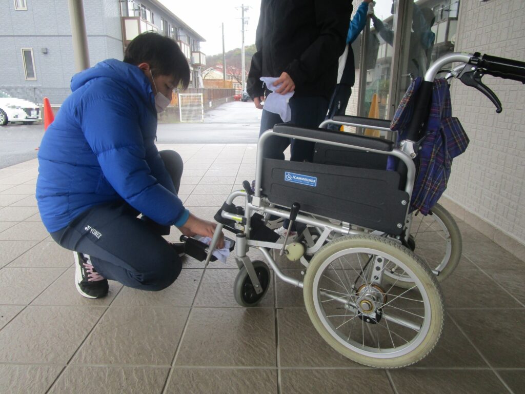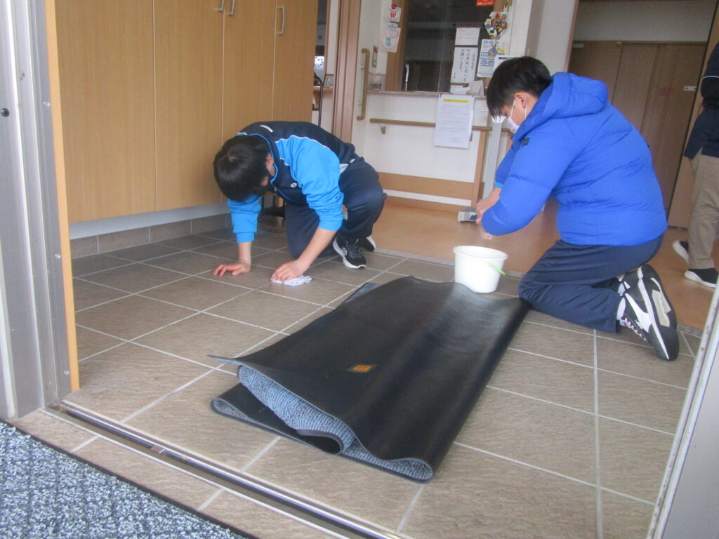 学校で学んだ清掃技能を生かしながら、掃き掃除や拭き掃除を行いました。