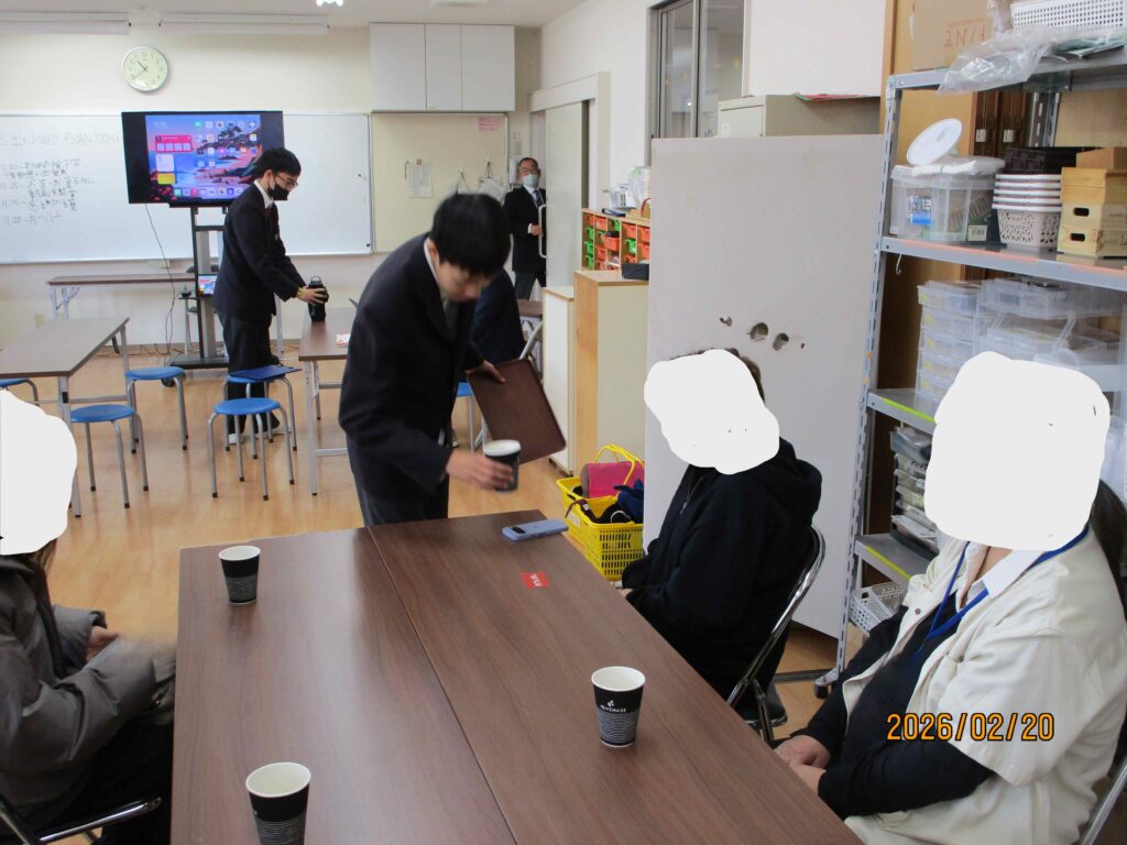 来てくださった保護者や施設職員の方に感謝の気持ちを込めてお茶出しをしました。