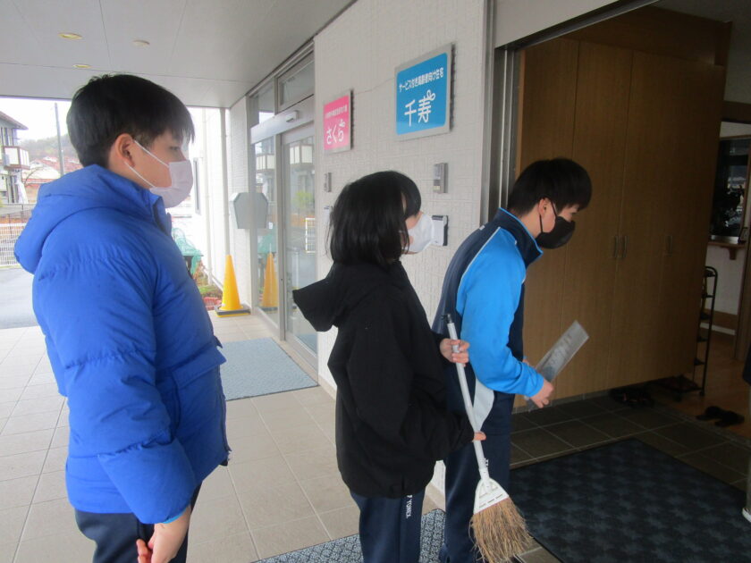 2月25日(水)、本校最寄りの高齢者施設「千寿」へ中学部3年生の生徒会役員がボランティア活動に行きました。